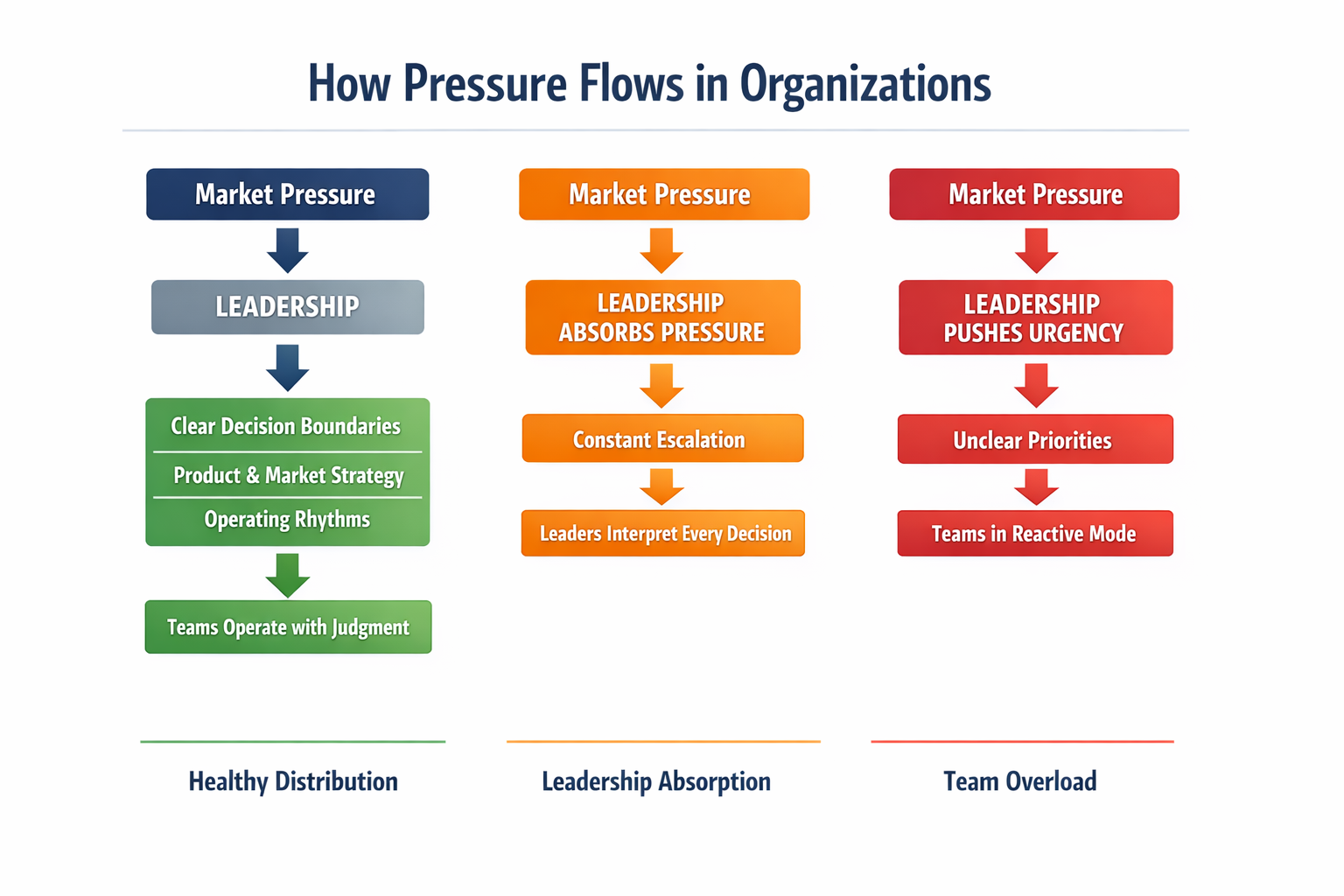 When organizations are designed to distribute judgment effectively, pressure moves through the system. Teams keep making decisions close to the work. Leadership stays focused on direction and coherence.
